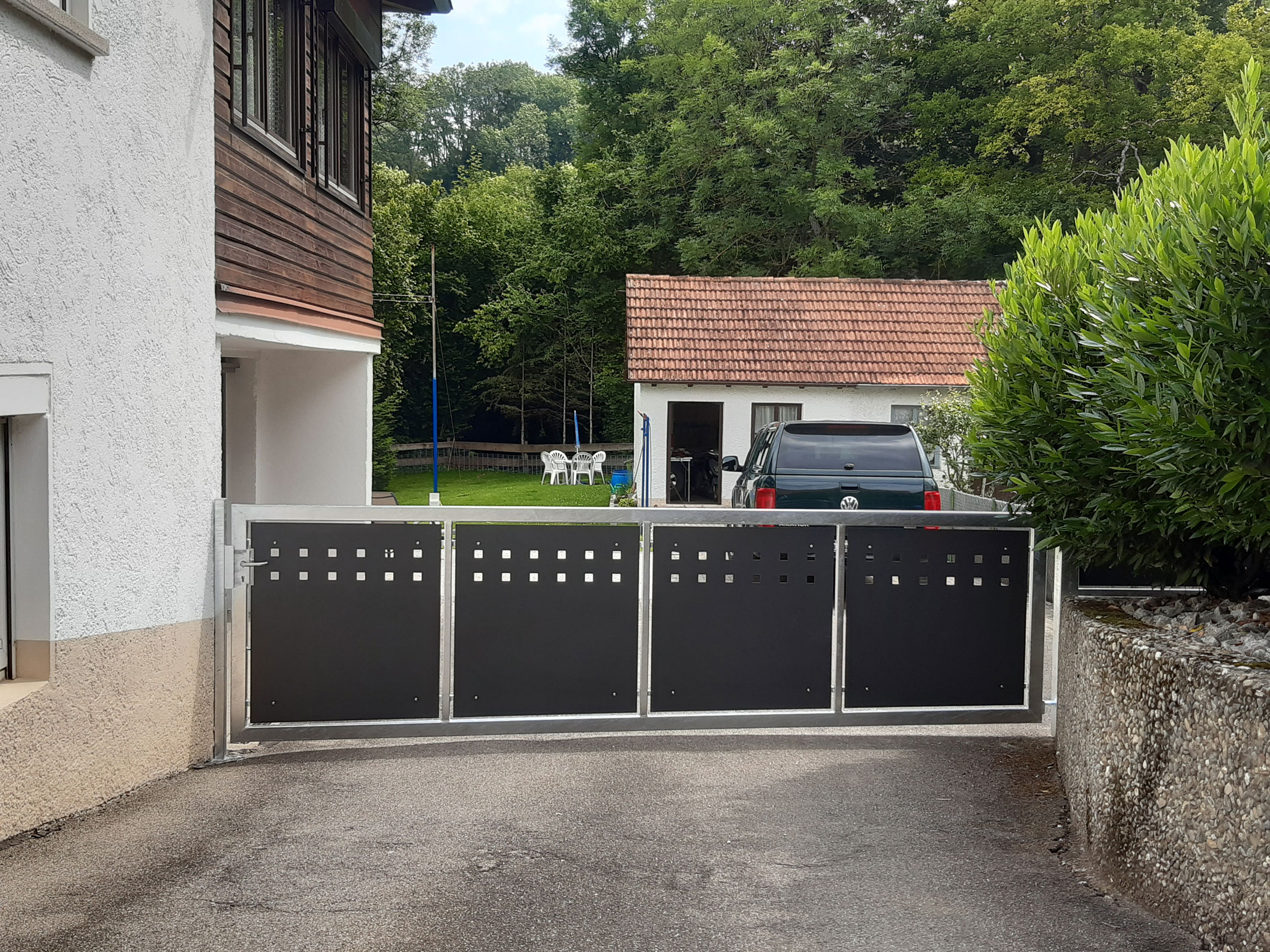 Tore sind nicht nur funktionale Elemente, sondern prägen auch das Erscheinungsbild Ihres Grundstücks. Bei Metallbau Leibold planen, fertigen und montieren wir Tore passgenau nach Ihren Anforderungen – modern, sicher und robust.